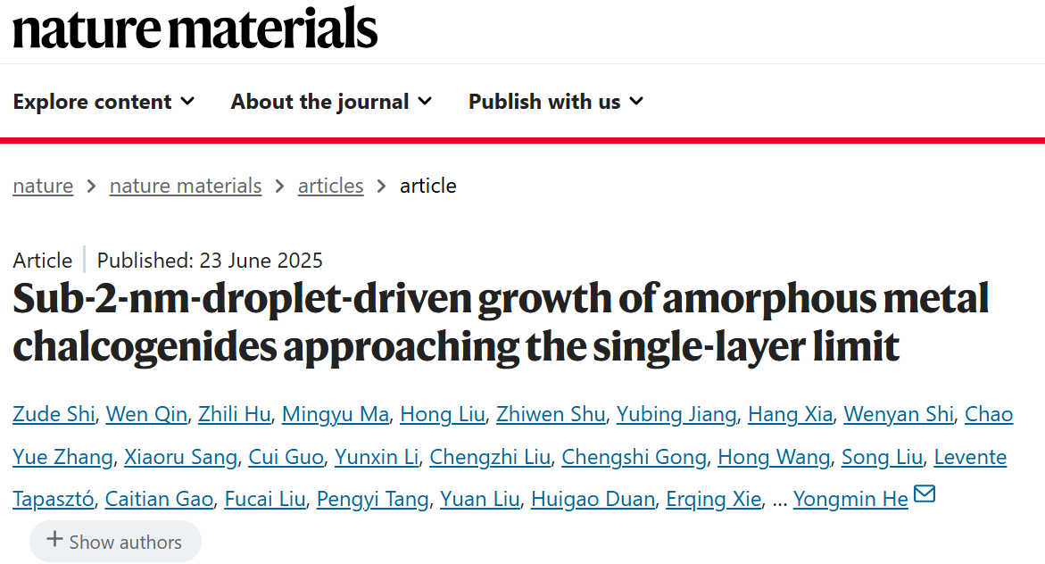 化工院何勇民教授团队实现非晶态材料体系的蚯蚓状单层极限生长